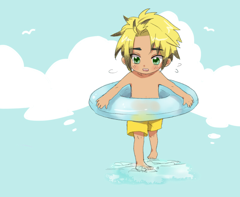 海に来たのに中々入らなくて波打ち際で戸惑っている風なヒューゴを描いたつもりだったけれど