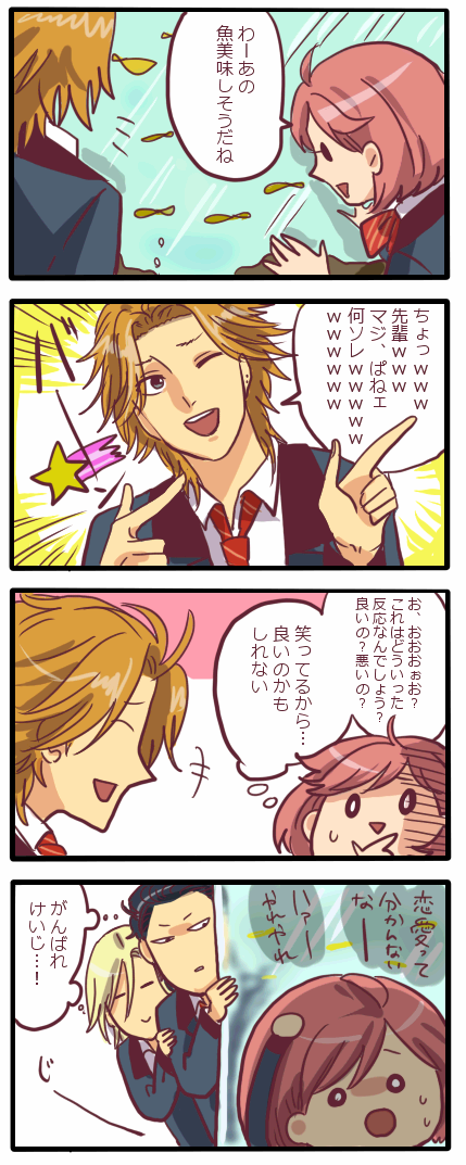 琥一と琉夏とけいじ(ヒロイン)が幼馴染なのでいつも陰から見守ってくれていたらいいなと思いました。