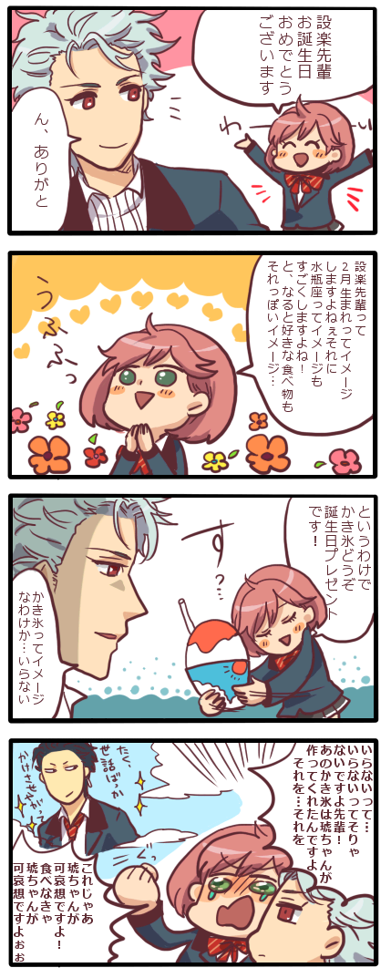 冷たいものが好きそうだなって思ったら琳太がかき氷だなっと言ったのでそのままそのネタを使わせて頂きました。