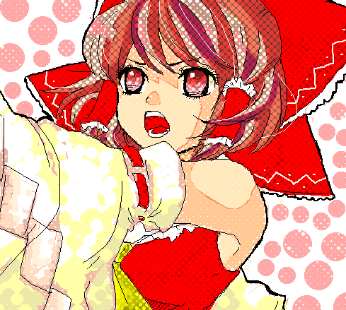 一人絵チャで描いていた霊夢(を加工したもの)↑