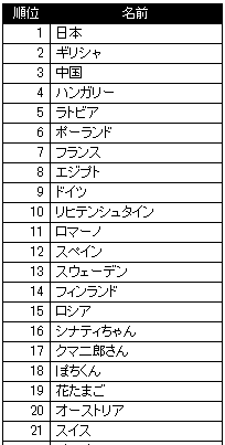 前のランキングには20位にも入らない、調べてみるとどうでもいいキャラがごっちゃになっている34位の中におりました。